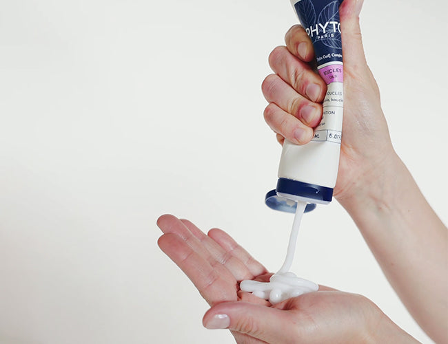 1. Sobre el cabello mojado, distribuir una nuez de producto sección por sección.